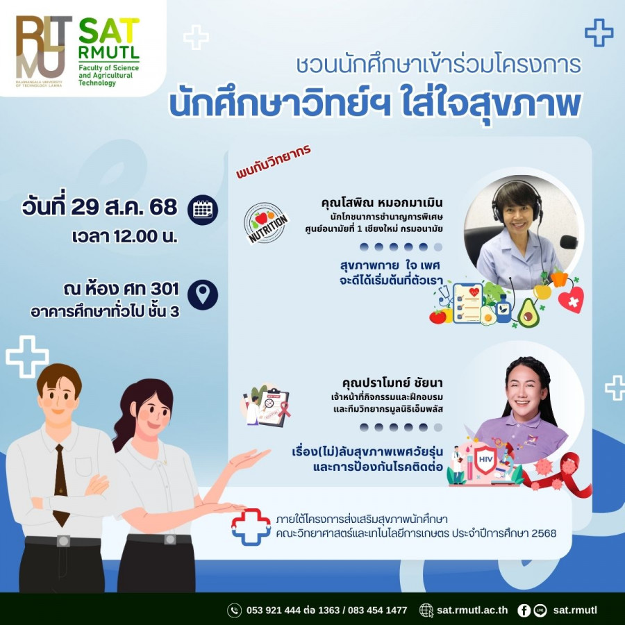 โครงการส่งเสริมสุขภาพนักศึกษาคณะวิทยาศาสตร์และเทคโนโลยีการเกษตร ประจำปีการศึกษา 2568